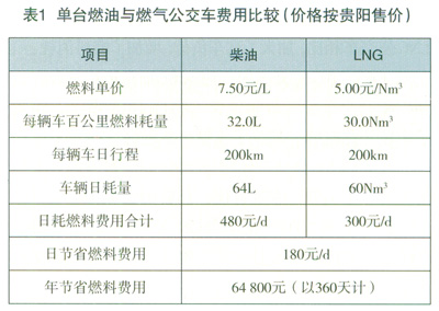 (4)LNG公交車兩天加一次氣,比CNG公交車減少了加氣次數(shù),且兩天為加氣往返里程減少一次,如貴陽每次加氣所需的往返里程平均5km左右。為此,采用LNG公交車既減少了為加氣所需的往返里程,又節(jié)約了因往返里程產(chǎn)生的燃料消耗與運行費用。若按照一次加氣所需的往返里程5km計,一年(以360天計)一輛LNG公交車可節(jié)約900km,可年節(jié)約天然氣270m3。